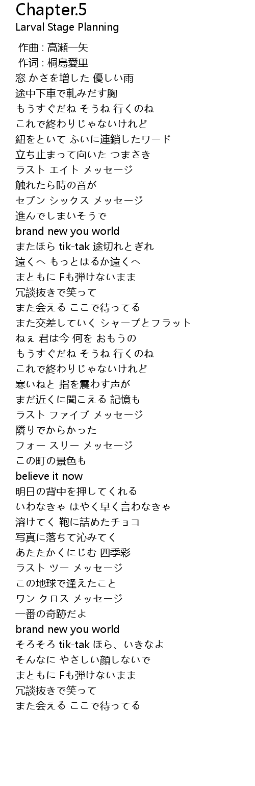 | [02:28.28] | ラスト ファイブ メッセージ |