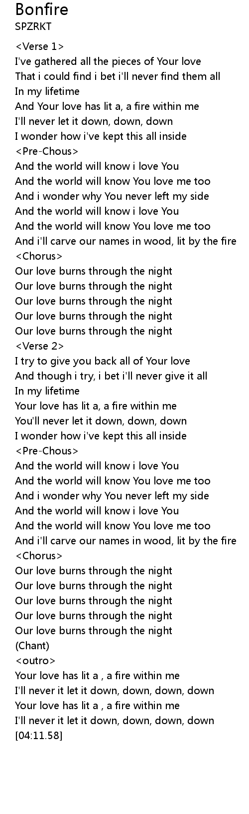 | [03:42.21] | Your love has lit a , a fire within me |
