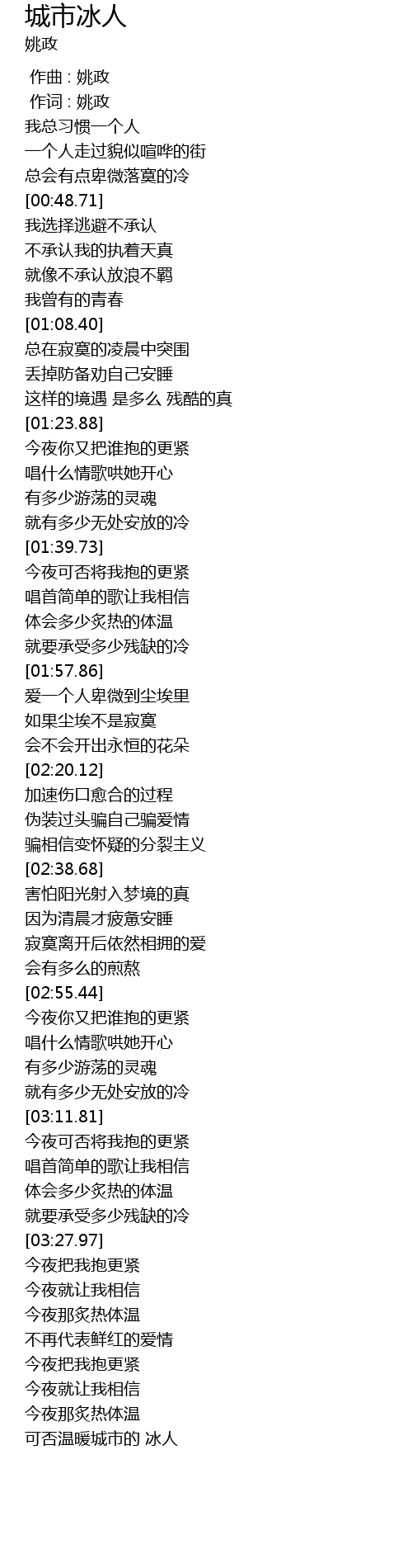 | [04:08.00] | 可否温暖城市的 冰人 |