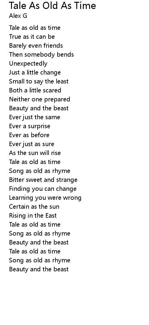 - Tale As Old As Time