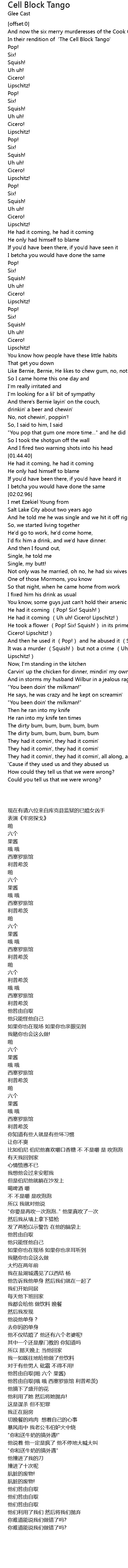 | [00:13.22] | In their rendition of 'The Cell Block Tango' |