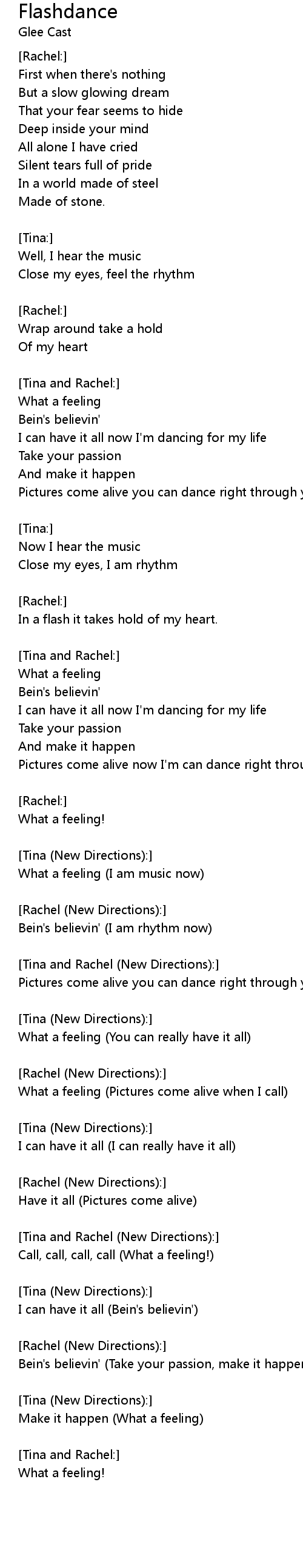 [Rachel (New Directions):] |