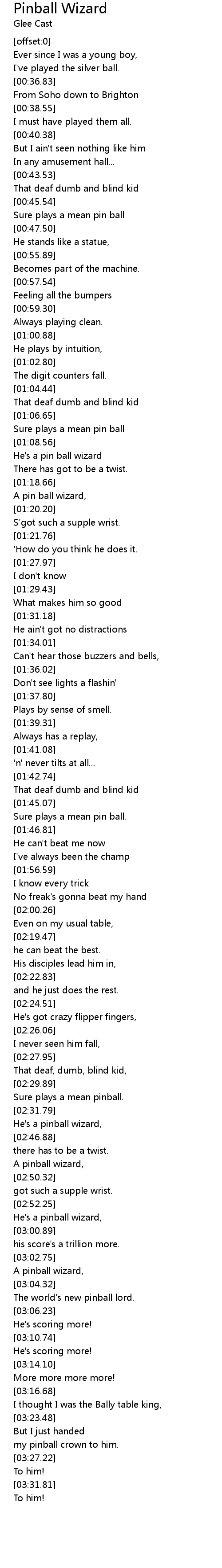 A pin ball wizard, |