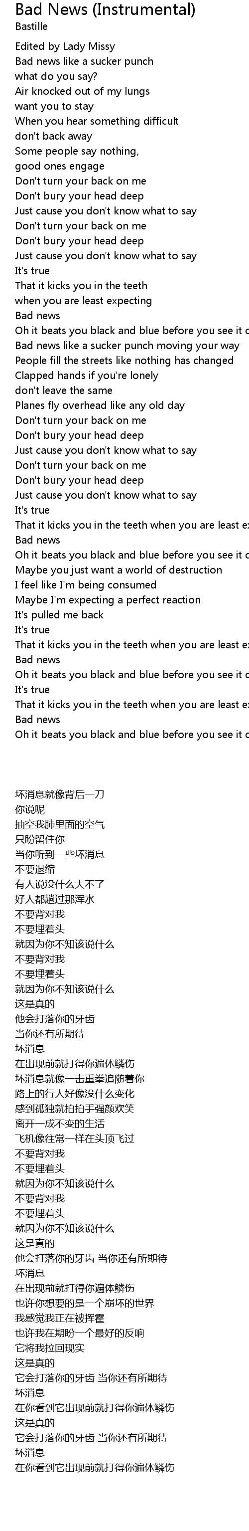 | [01:39.81] | Bad news like a sucker punch moving your way |
