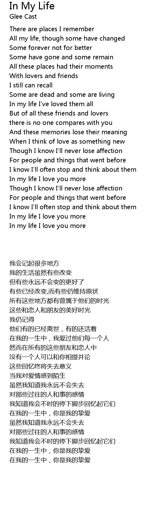 In My Life Lyrics