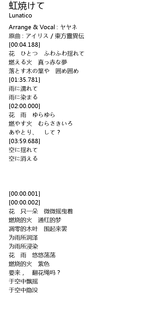 | [00:00.001] | Arrange & Vocal : ヤヤネ |
