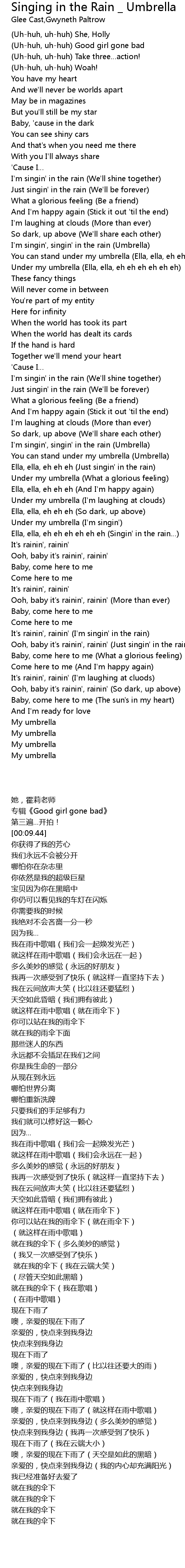 | [01:41.82] | I'm singin', singin' in the rain (Umbrella) |