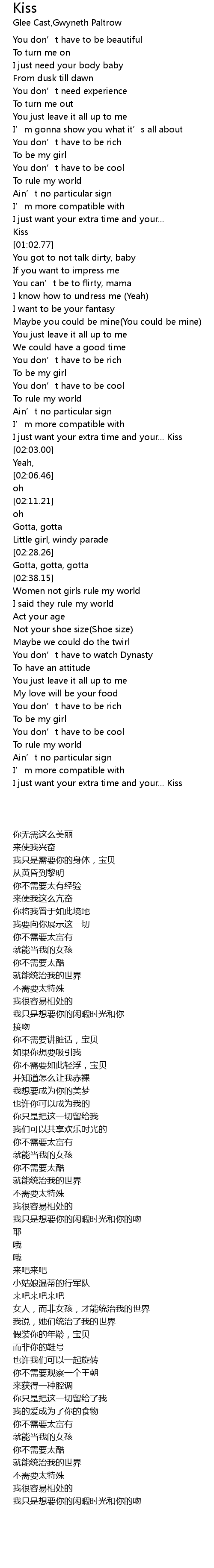 | [01:56.35] | I just want your extra time and your... Kiss |