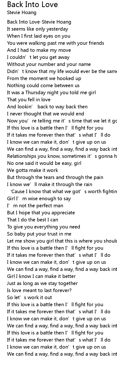 | [00:00.91] | Back Into Love-Stevie Hoang |