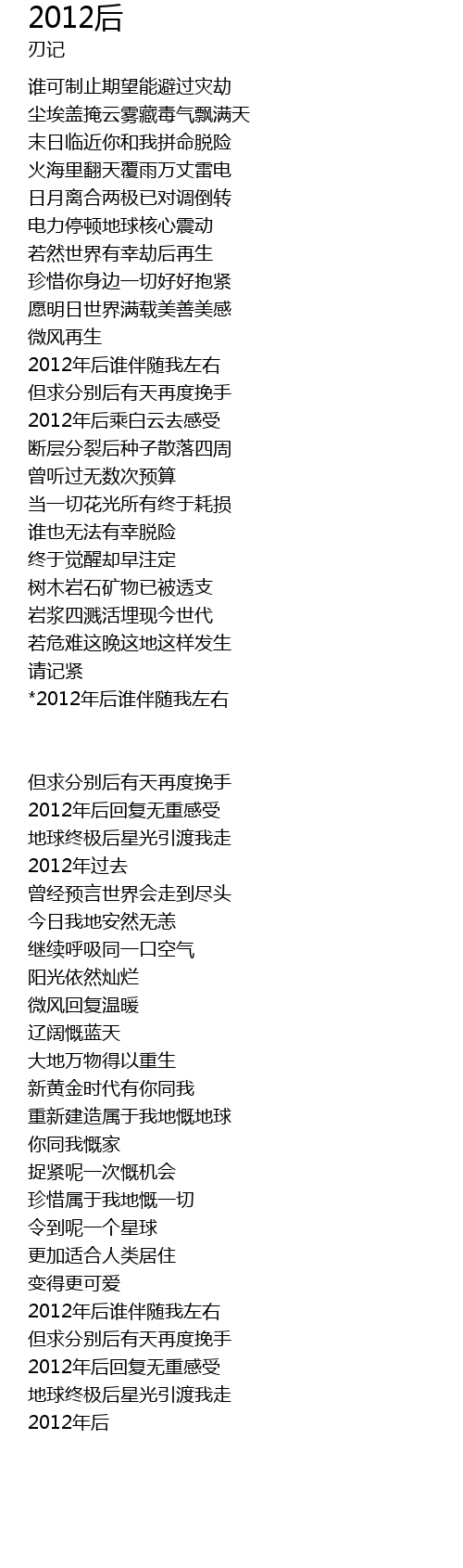 | 2012 nián hòu shuí bàn suí wǒ zuǒ yòu | |