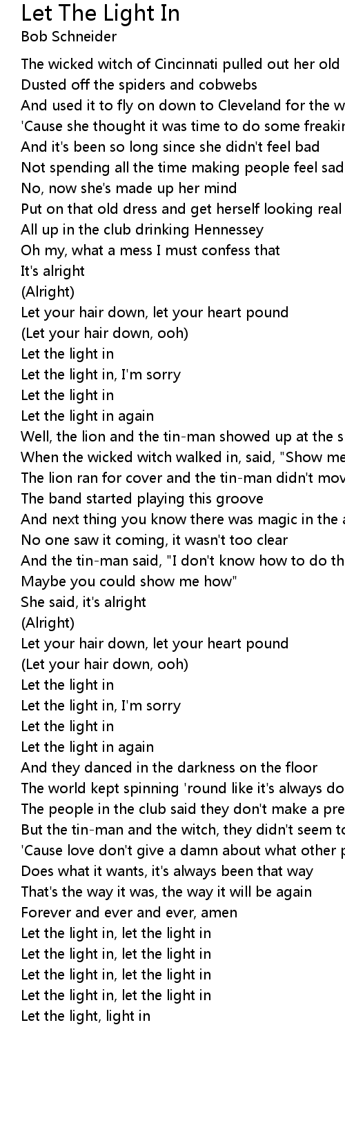 Let the light in, let the light in |