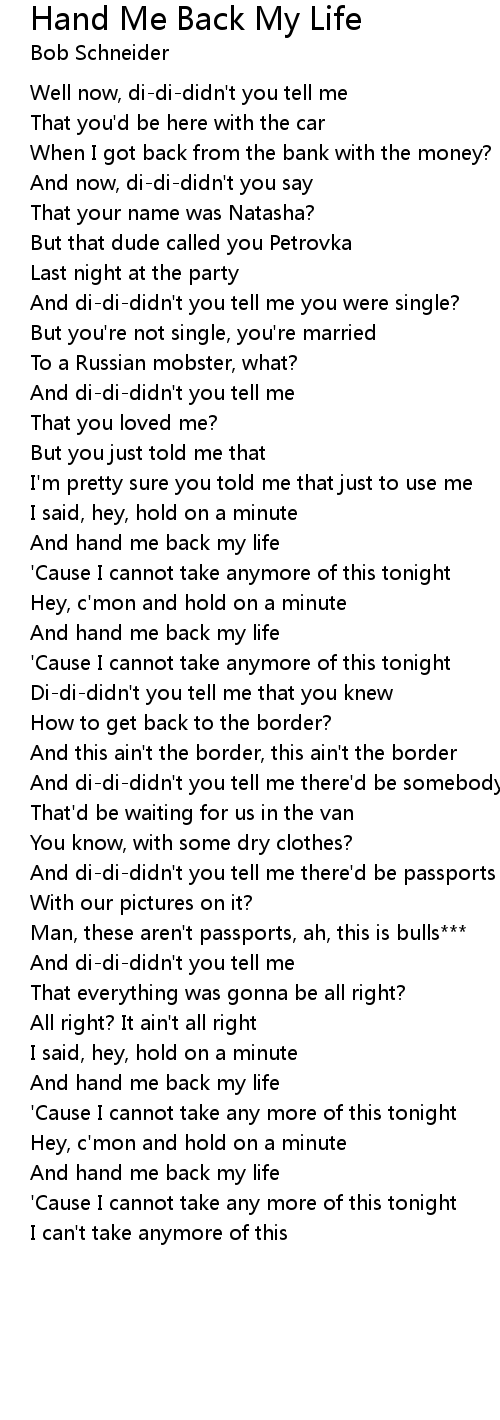 And hand me back my life |