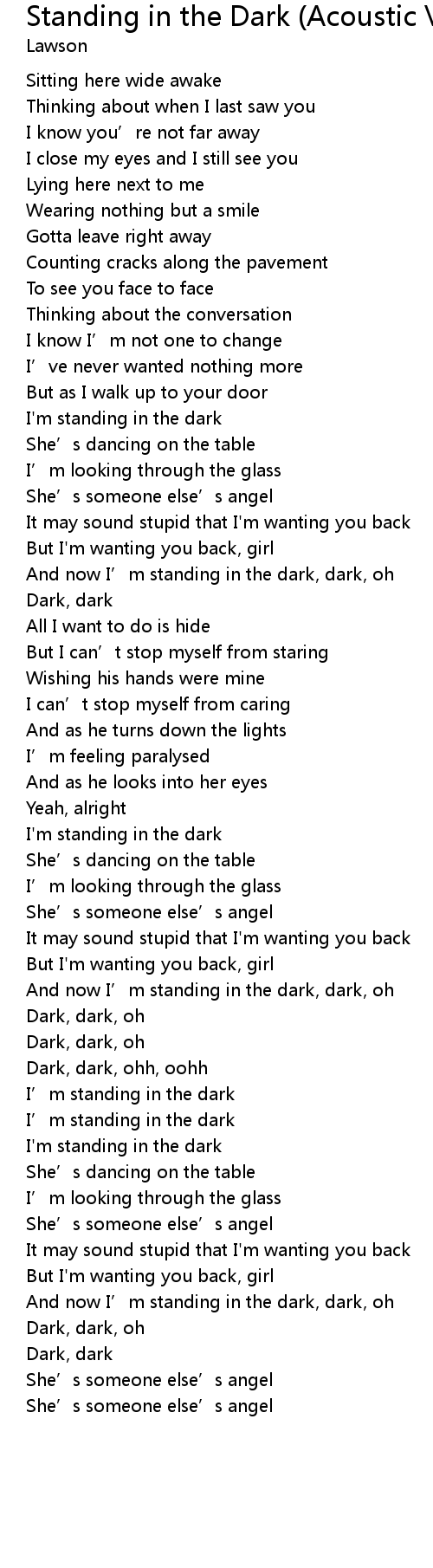 | And now I’m standing in the dark, dark, oh | |