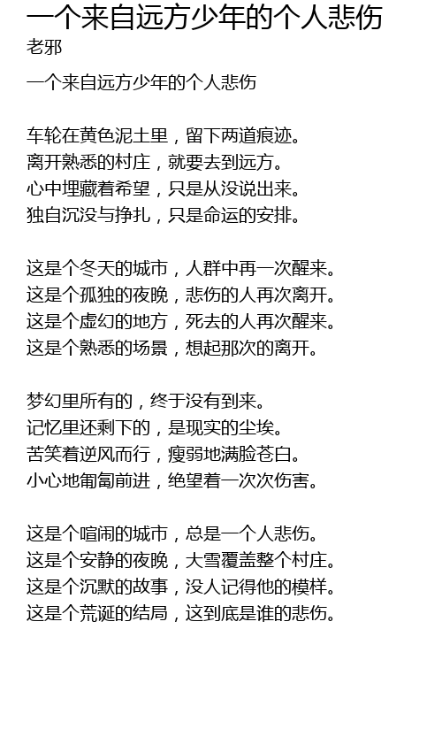 | 这是个喧闹的城市,总是一个人悲伤。 | |