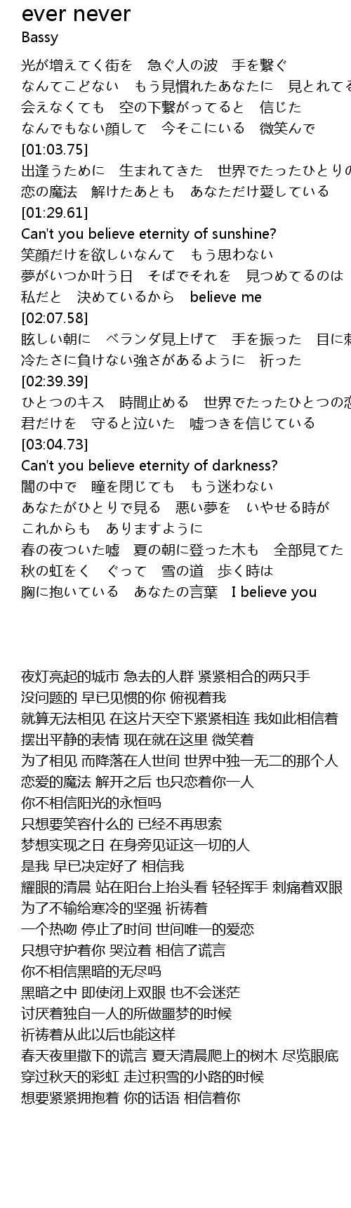 | [04:02.11] | 胸に抱いている あなたの言葉 I believe you |