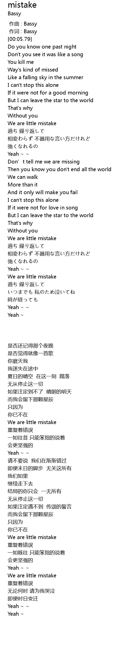 | [00:00.00] | 作曲 : Bassy |
