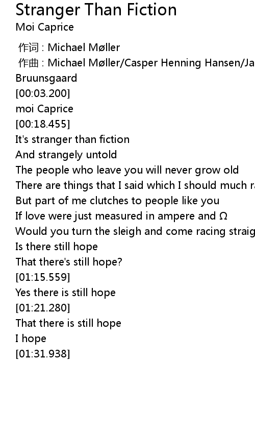 | [00:25.848] | It' s stranger than fiction |