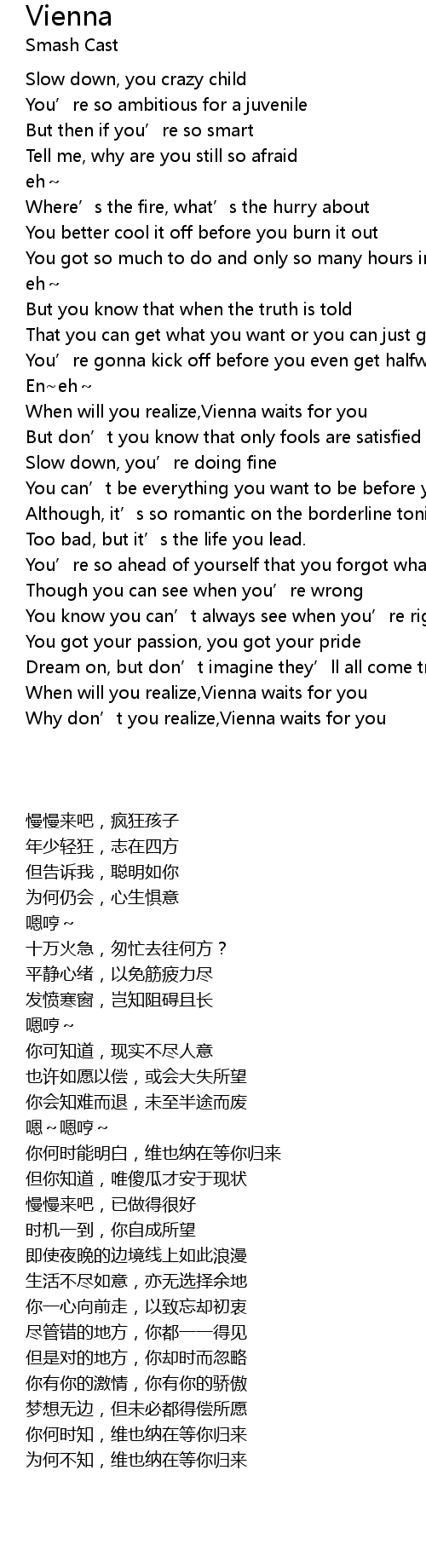 | [02:01.000] | Why don' t you realize, Vienna waits for you |