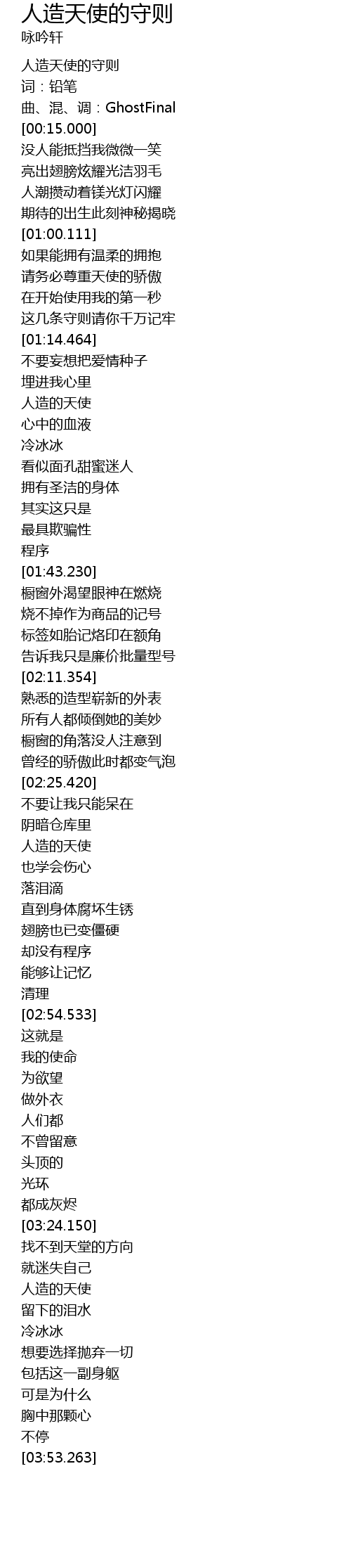 | [03:30.864] | 人造的天使 |