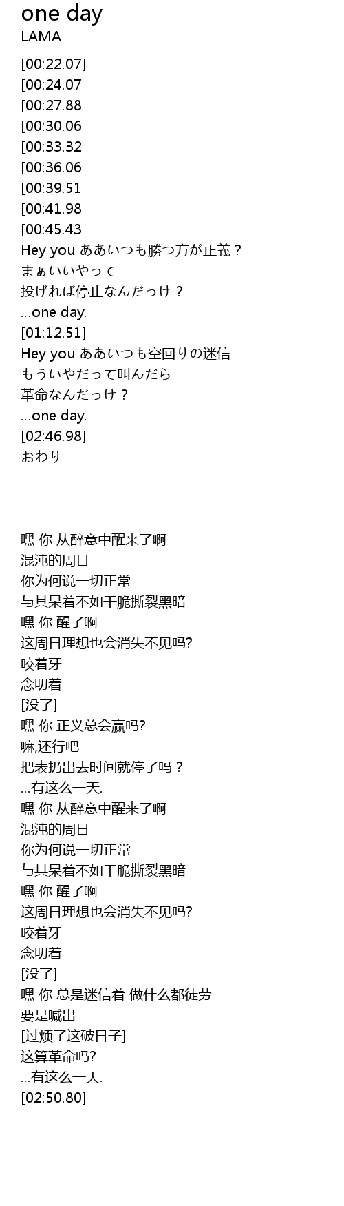 | [00:47.82] | Hey you ああいつも勝つ方が正義? |