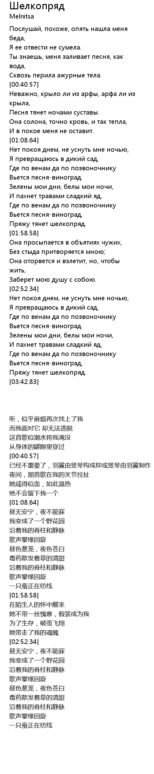 [01:54.88] Пряжу тянет шелкопряд.