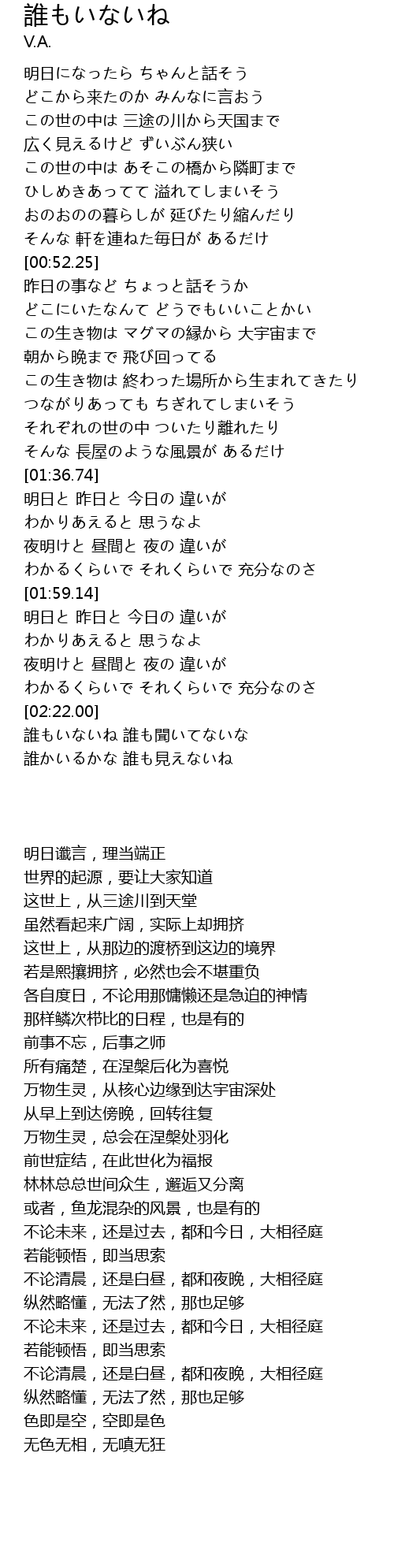 | [02:22.22] | 誰もいないね 誰も聞いてないな |