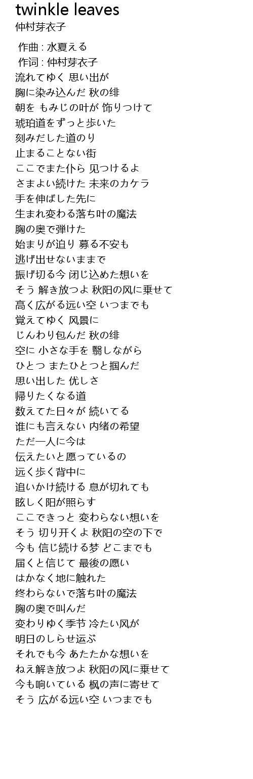 | [00:01.00] | 作词 : 仲村芽衣子 |