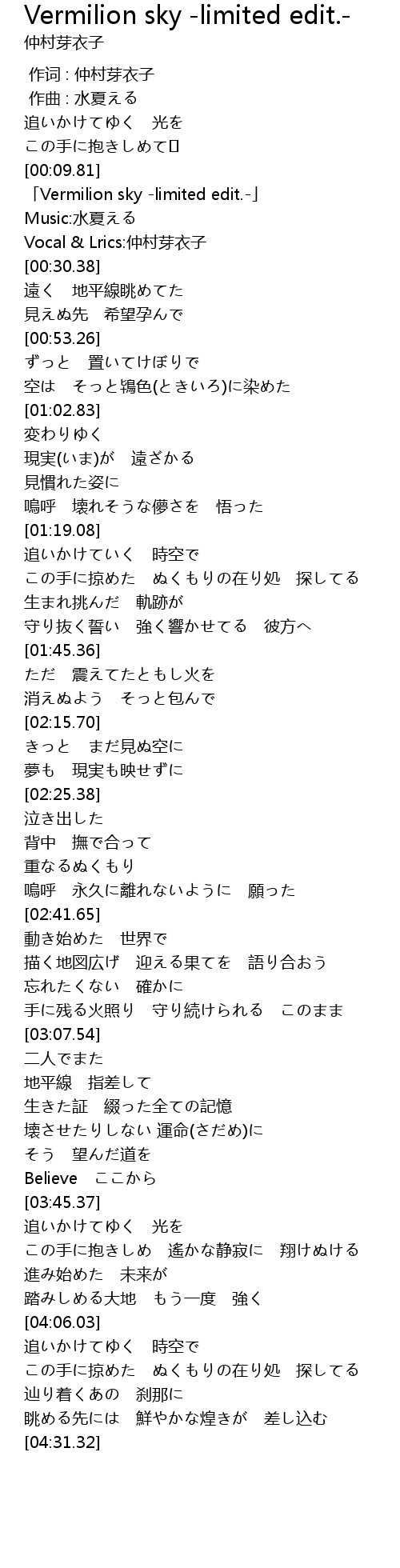 | [00:14.96] | 「Vermilion sky -limited edit.-」 |