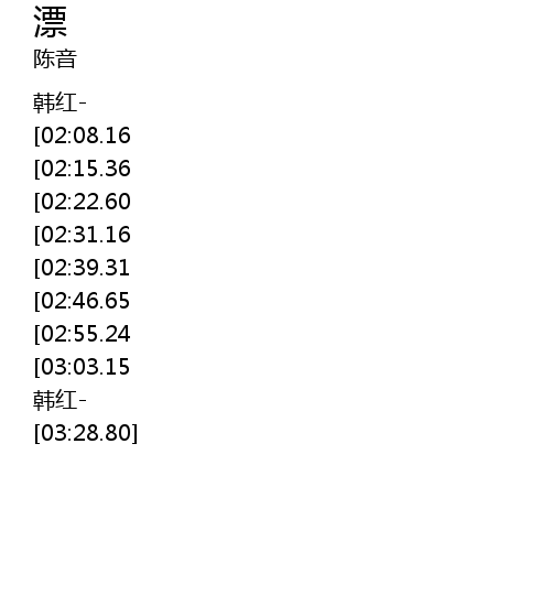 | [00:31.55][02:08.16] | 让我去漂 漂向哪里没关系 |