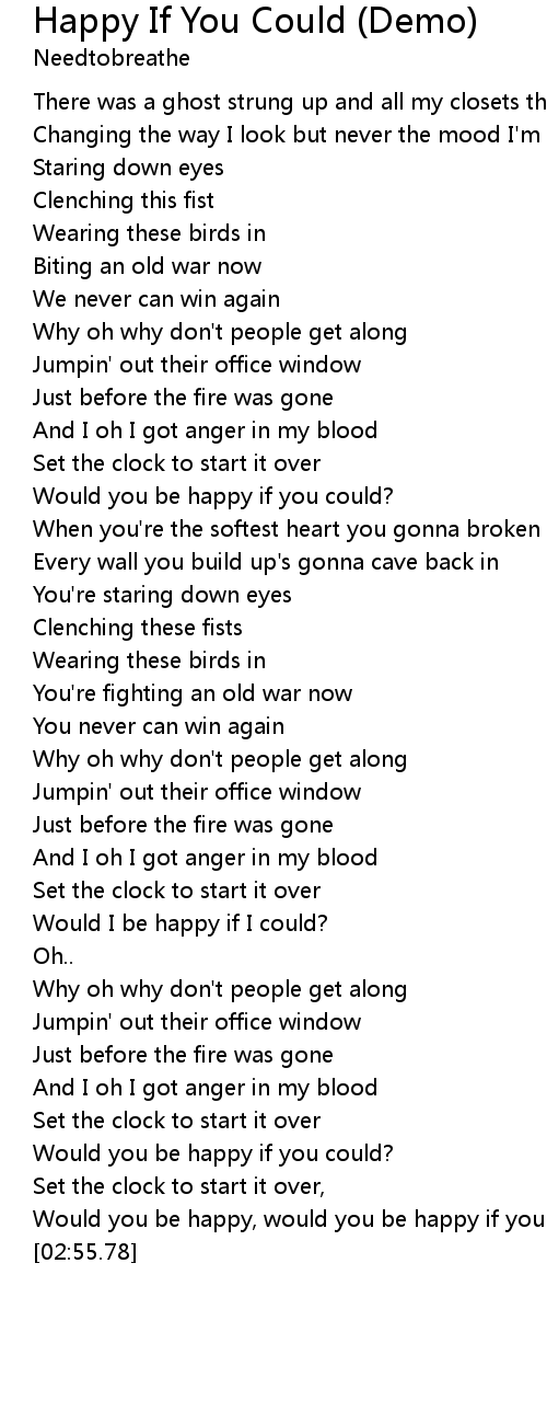 Would you be happy, would you be happy if you could? |