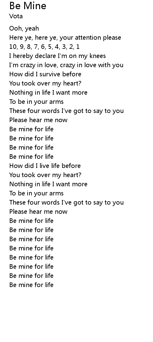 | Be mine for life |