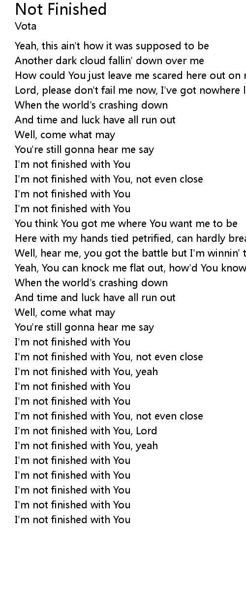 | I'm not finished with You, not even close | |