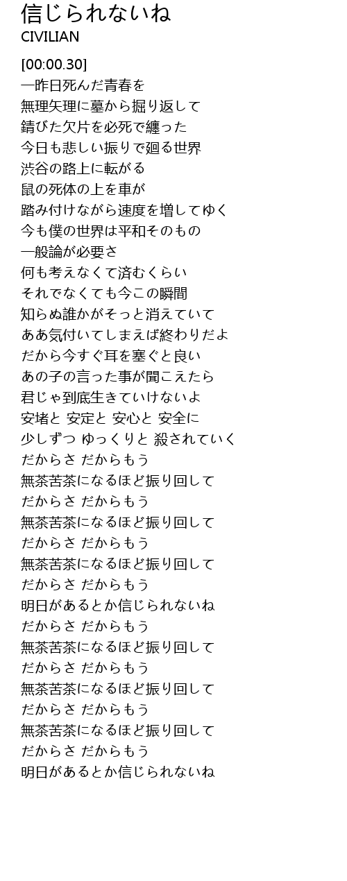 | [01:58.02] | 少しずつ ゆっくりと 殺されていく |