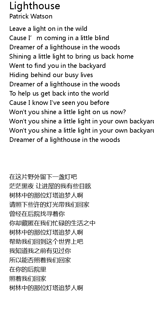 | [00:40.725] | Dreamer of a lighthouse in the woods |
