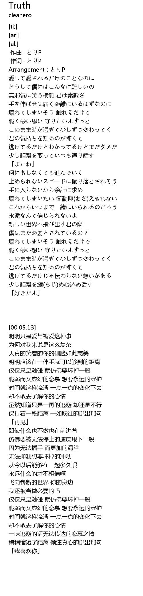 | [00:05.13] | Arrangement:とりP |
