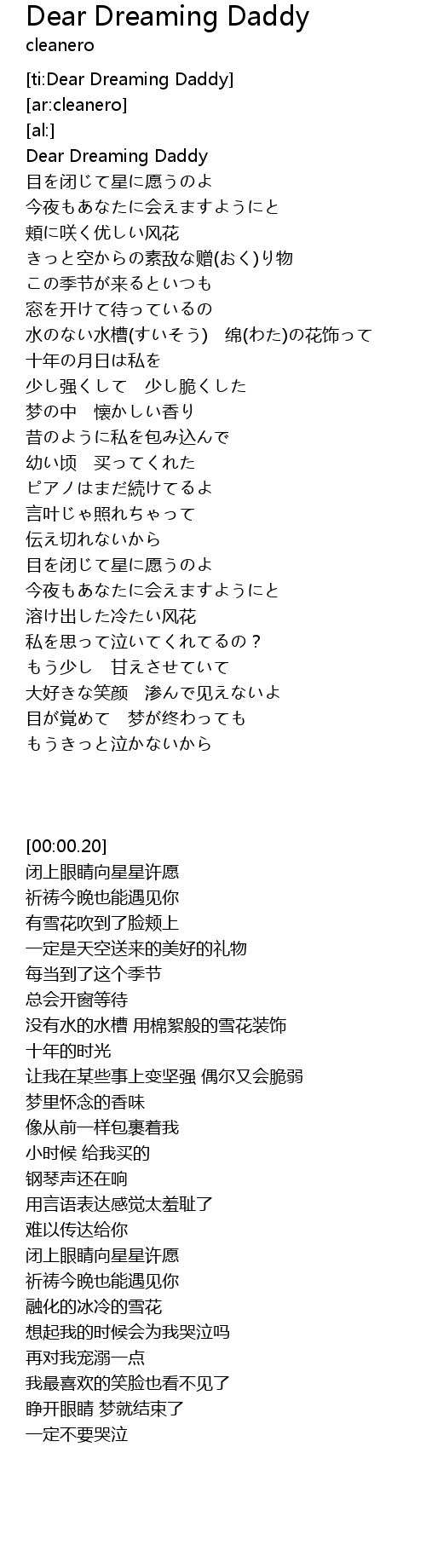 | [02:58.54] | 今夜もあなたに会えますようにと |