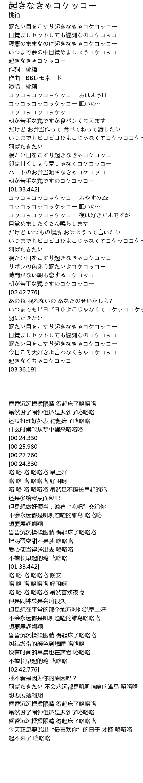 | [00:40.446] | コッコッコッコッケッコー 眠いの~ |