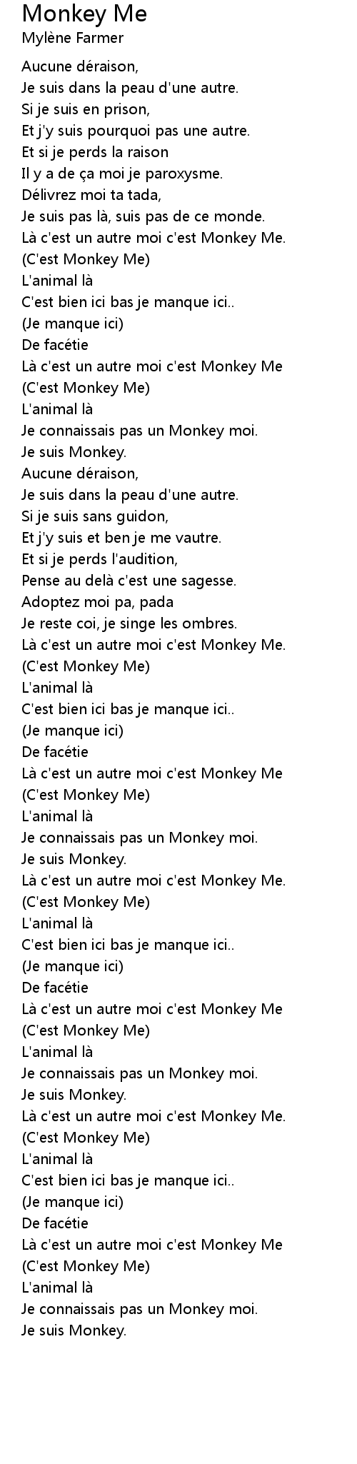 | Là c'est un autre moi c'est Monkey Me | |