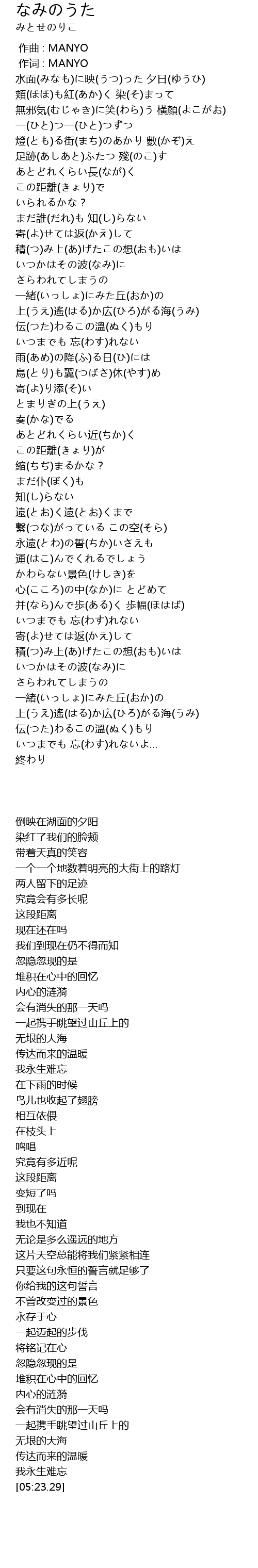 | [03:47.67] | 心(こころ)の中(なか)に とどめて |