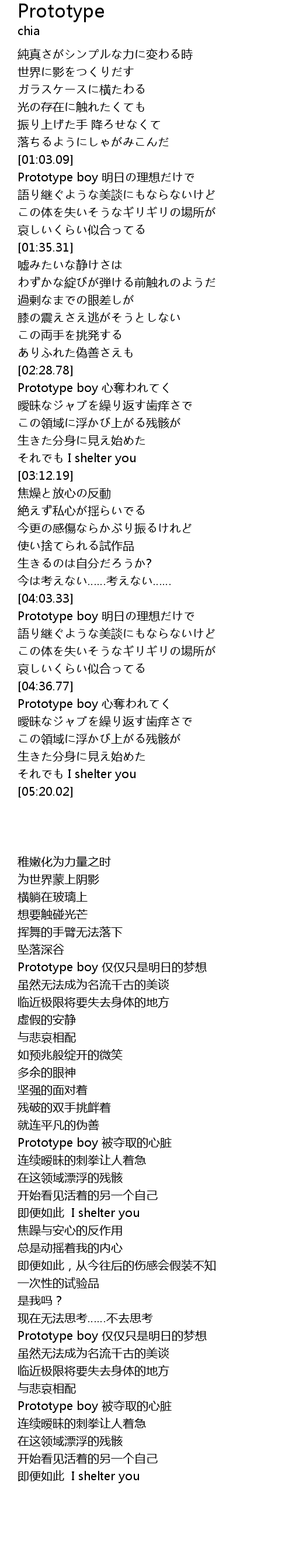 | [01:03.71] | Prototype boy 明日の理想だけで |