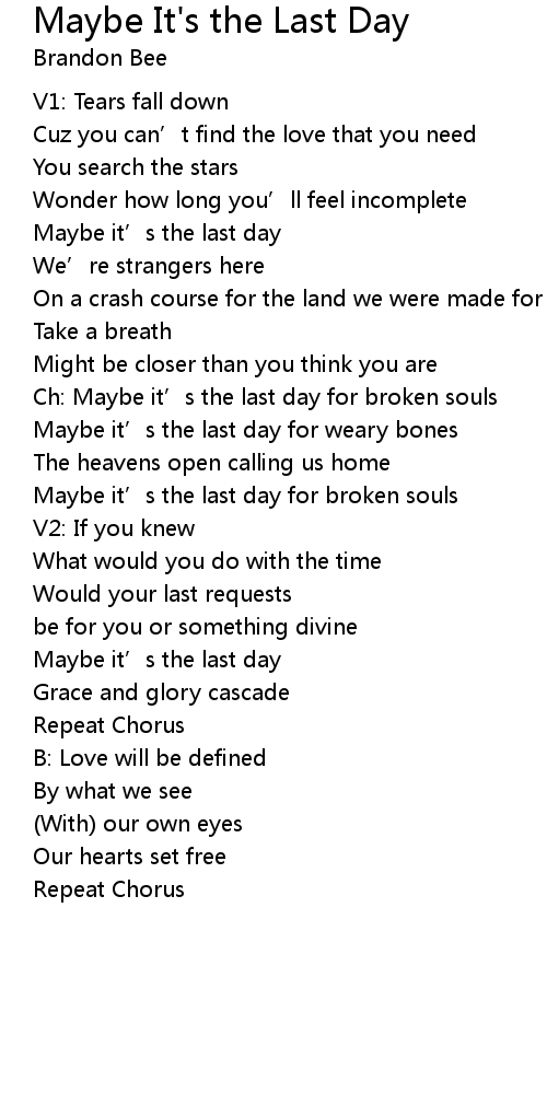 | Song | Maybe It's the Last Day |