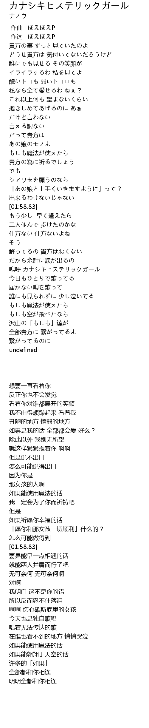 | [03:10.88] | 嗚呼 カナシキヒステリックガール |