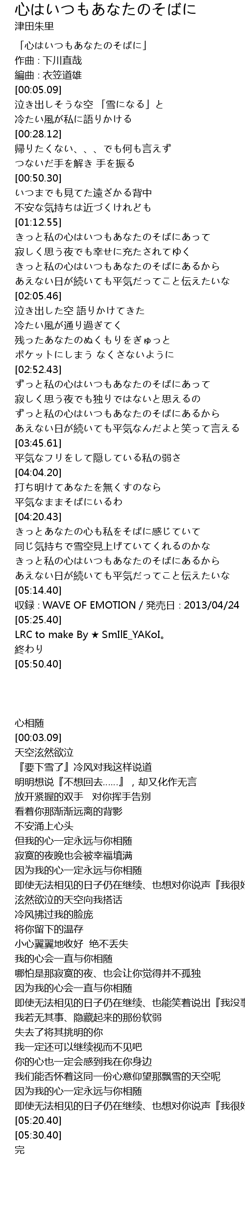 | [00:00.09] | 「心はいつもあなたのそばに」 |