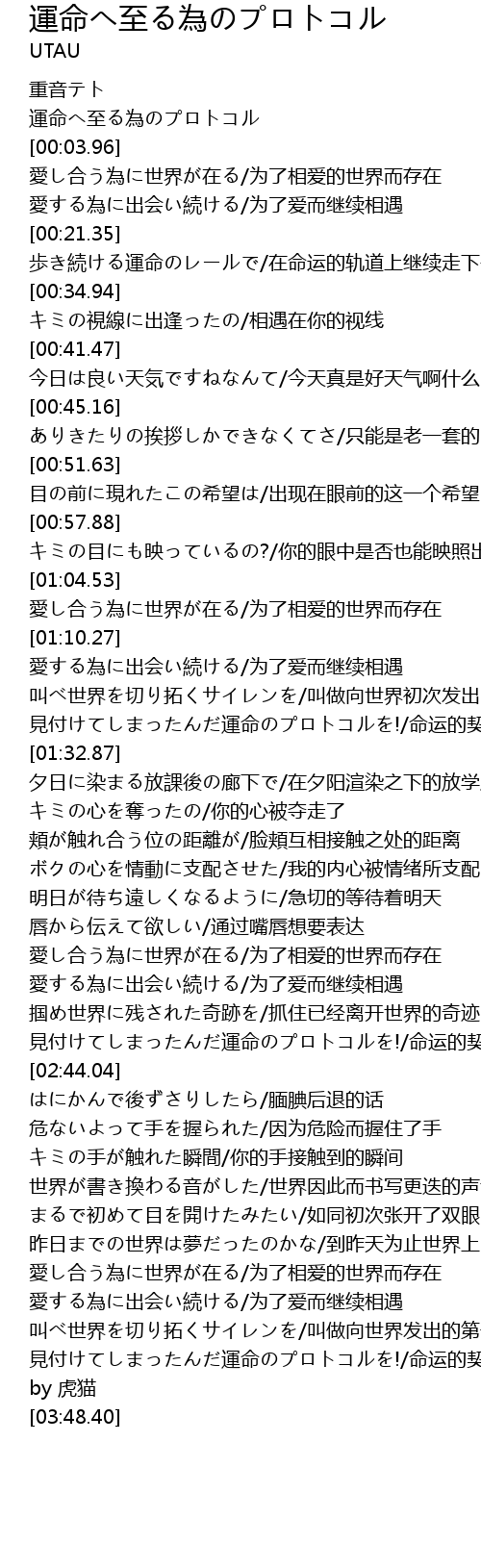 | [03:37.94] | 見付けてしまったんだ運命のプロトコルを!/命运的契约,我终于找到了! |