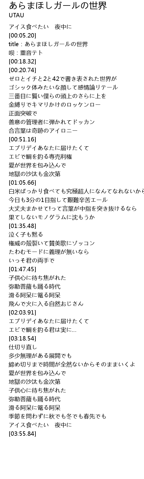| [00:25.22] | ゼロとイチと2と42で書き表された世界が |