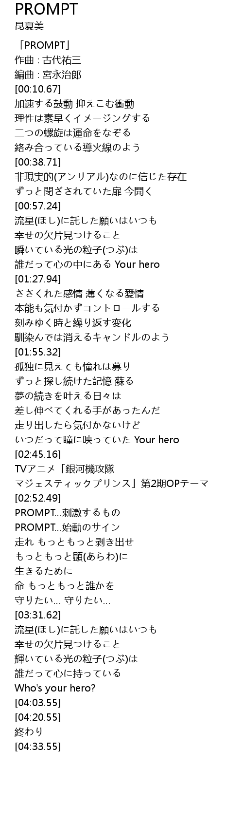 | [02:49.49] | マジェスティックプリンス」第2期OPテーマ |
