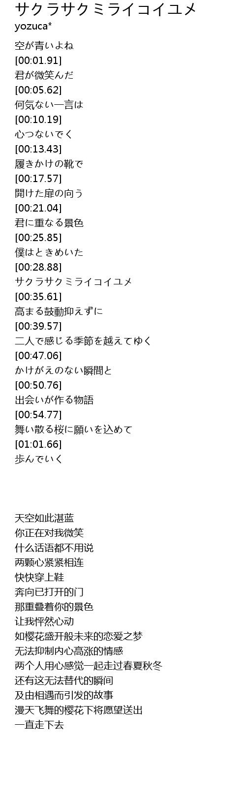 | [00:56.46] | 舞い散る桜に願いを込めて |