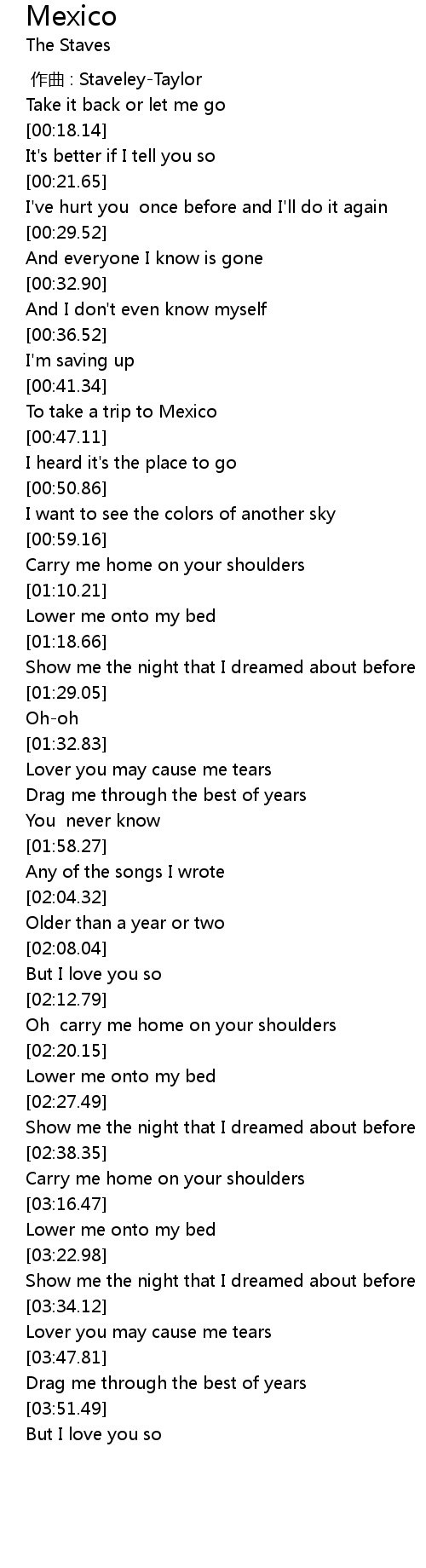 | [00:00.000] | zuo qu : StaveleyTaylor |