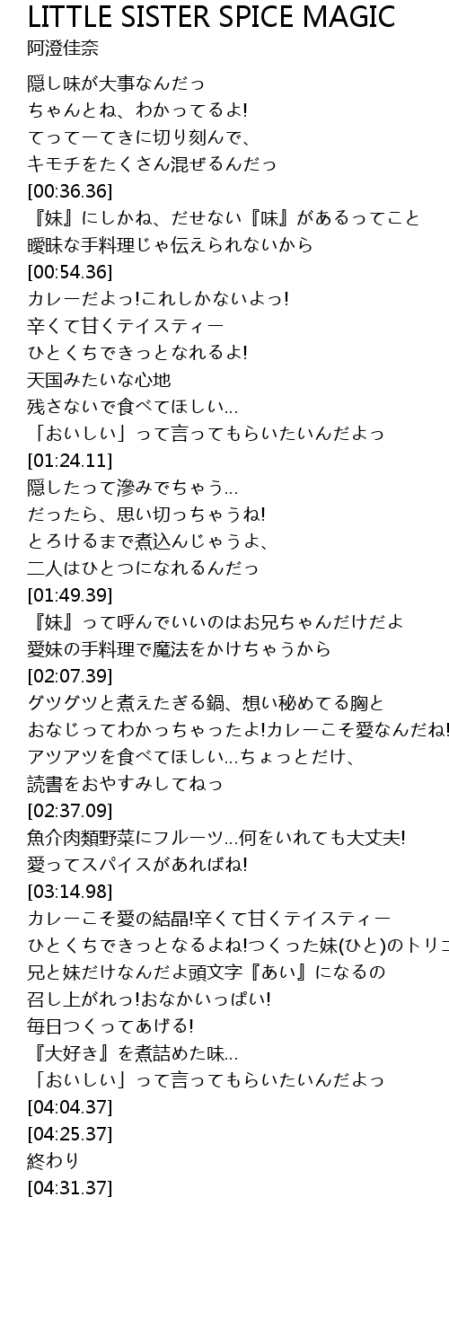 | [00:37.04] | 『妹』にしかね、だせない『味』があるってこと |
