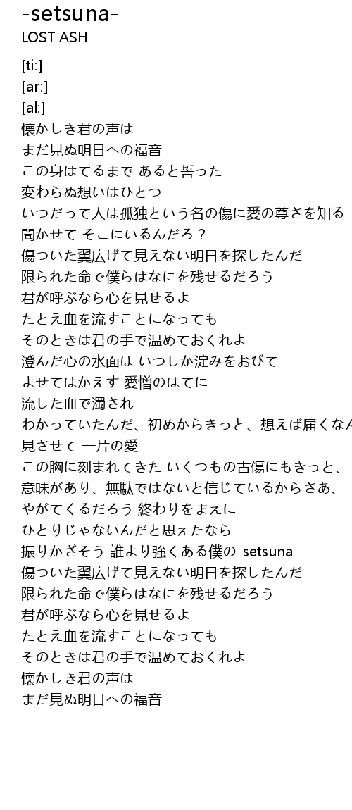 | [02:20.20] | 振りかざそう 誰より強くある僕の-setsuna- |